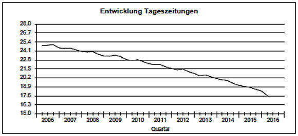 Hier die generelle Kurve der IVW zur Entwicklung der Auflage bei der Gattung Tageszeitung:
