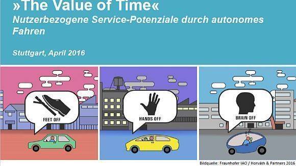 Die Autoren der Fraunhofer-Studie "The Value of Time" - Nutzerbezogene Service-Potenziale durch autonomes Fahren sehen enorme Marktpotentiale, durch die sich die sinkenden Absatzzahlen bei herkömmlichen Autos abmildern ließen. Profitieren könnte davon nicht nur die Automobilindustrie. Auch für Hersteller technischer Endgeräte und digitale Serviceanbieter böte sich ein Milliardenmarkt. Dazu befragten die Forscher insgesamt 1500 Autofahrer aus den Ländern Deutschland, Japan und den USA.