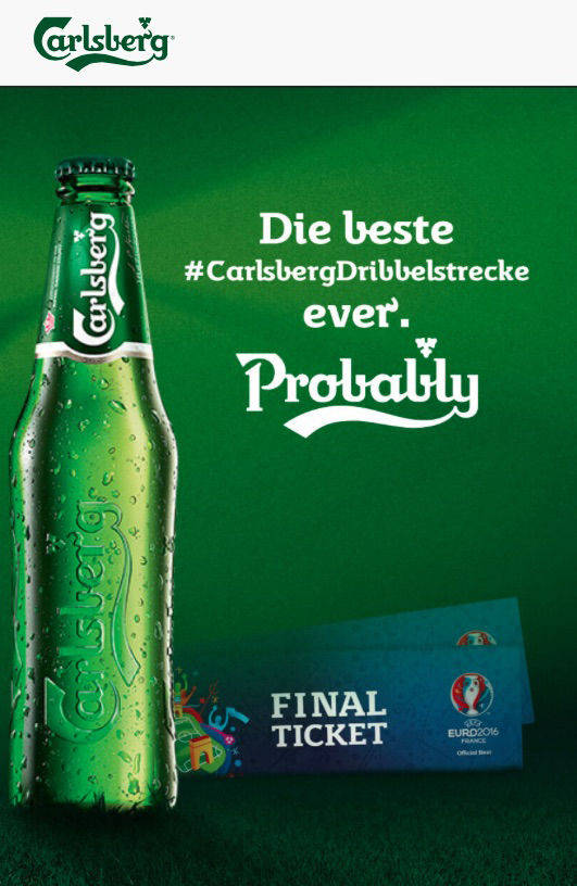 Gewinnen kann man natürlich auch etwas. "Das Motto von Carlsberg zur EURO in Frankreich lautet 'Tickets für alle!'. Wir möchten es so vielen Leuten wie möglich ermöglichen, live vor Ort dabei zu sein", erklärt Oliver Piskora, Senior Brand Manager Carlsberg. "Mit der Dribbelstrecke hat jeder die Chance sich Tickets für das Finale zu sichern. Dabei kommt es nicht alleine auf das Können an, sondern auf Kreativität und Herzblut."
